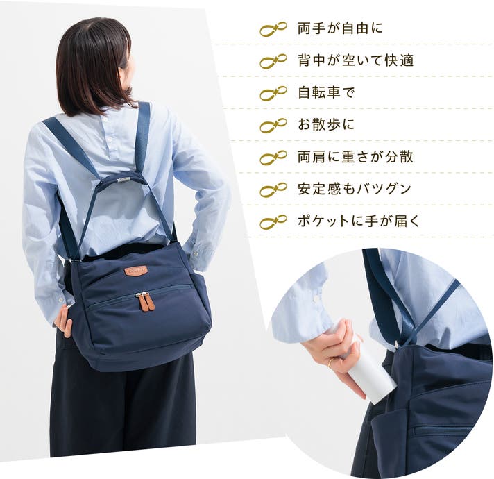 - 通勤に、出張に、子育てに、旅行に、ジム通い…幅広く使えて漏れなく楽ちん