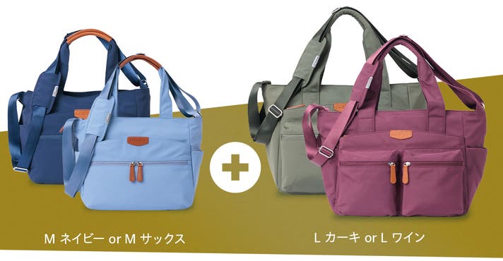 ※Mサイズの色は濃いネイビーとサックスの2色から、Lサイズの色はカーキとワインの