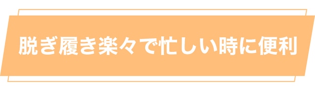 簡単に脱ぎ履きができる設計になっており、足をスムーズにスリップイン・アウトできます。忙しい朝など、時間の制約がある場面で便利です。