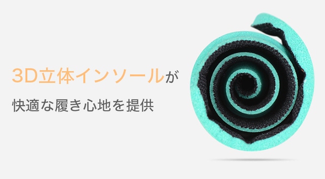 高弾力の3D立体インソールが長時間の歩行や立ち仕事でも快適な履き心地を提供します。