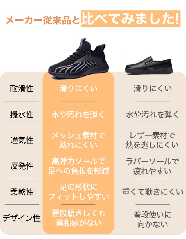 - 【特殊な耐滑ソール】滑りを大幅に軽減。忙しい厨房内での動きもスムーズに。