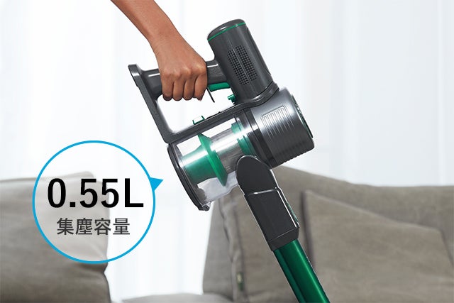 - 長時間の使用も腕への負担がない重さ、シーンに応じてノズルとモードを使い分け、掃除が手軽に!