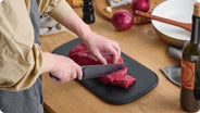 さらに、表面に施された「しぼ加工」により、食材が滑りにくい設計になっています。まな板の表面に細かな凹凸をつけることで、食材が滑らずに安定して切ることができます。特に、柔らかく滑りやすい食材には、切りやすさをご実感いただけます。