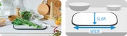そんな、狭いキッチン台での困りごとを解決するために生まれたのが、この『スリムワイド形状』。広い調理面と、奥行きの省スペースを組み合わせた、ユニークなサイズ感です。