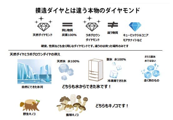 化学が作りだした高品質ダイヤモンドだから、天然より安価で実現できた商品です