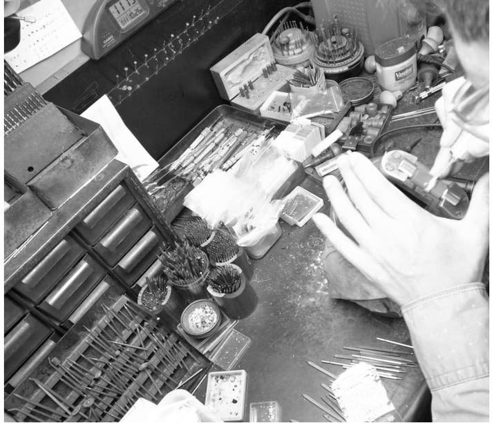 製品の製作は東京都ジュエリー街、御徒町にて職人が1つ1つ手作業で作っています