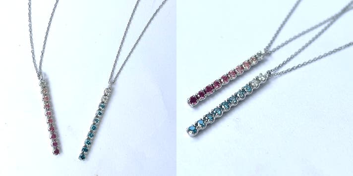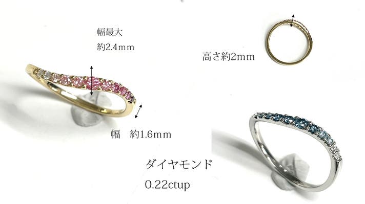 ※こちらのデザインはピンクとブルーでダイヤモンドカラーの配置が違っていますのでご注意ください(ピンク右が濃いカラー、ブルー左が濃いカラー)