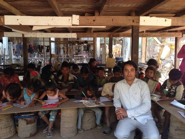 校長先生はカンボジア人のジョンさん。平日はホテルマンとして勤務、休日はココナッツ・スクールで校長先生として活動しています。