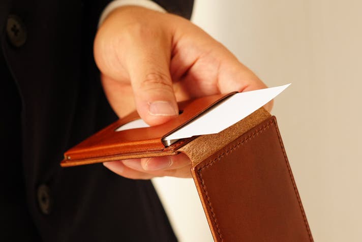 素材には内外装ともに贅沢な栃木レザーを採用し、名刺の出し入れも滑らか。