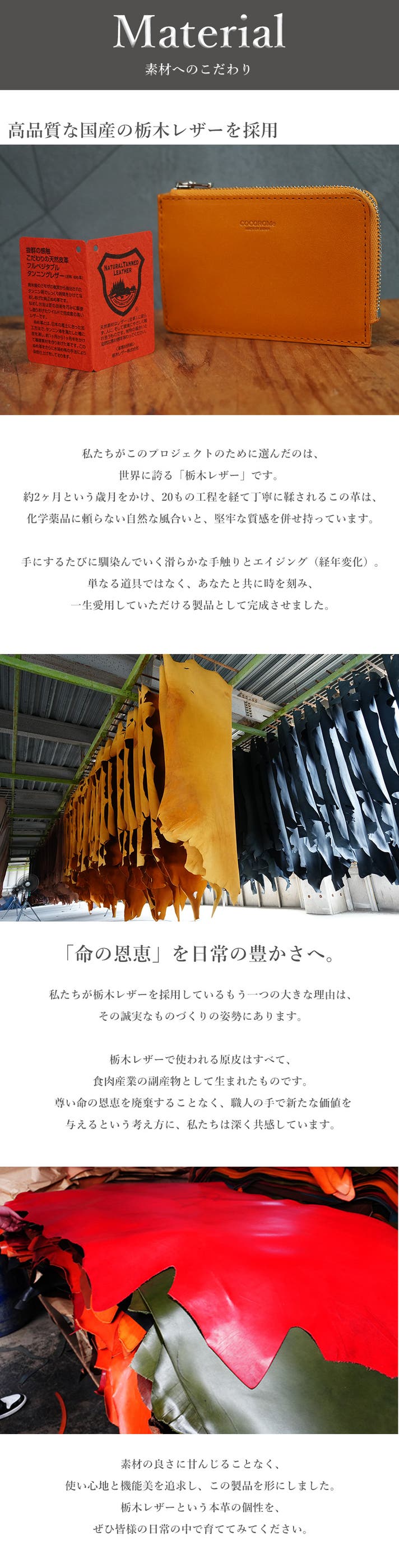 - 内外全てに栃木レザーを贅沢に使用。使うほどに手に馴染み、一生モノの相棒へと育つ