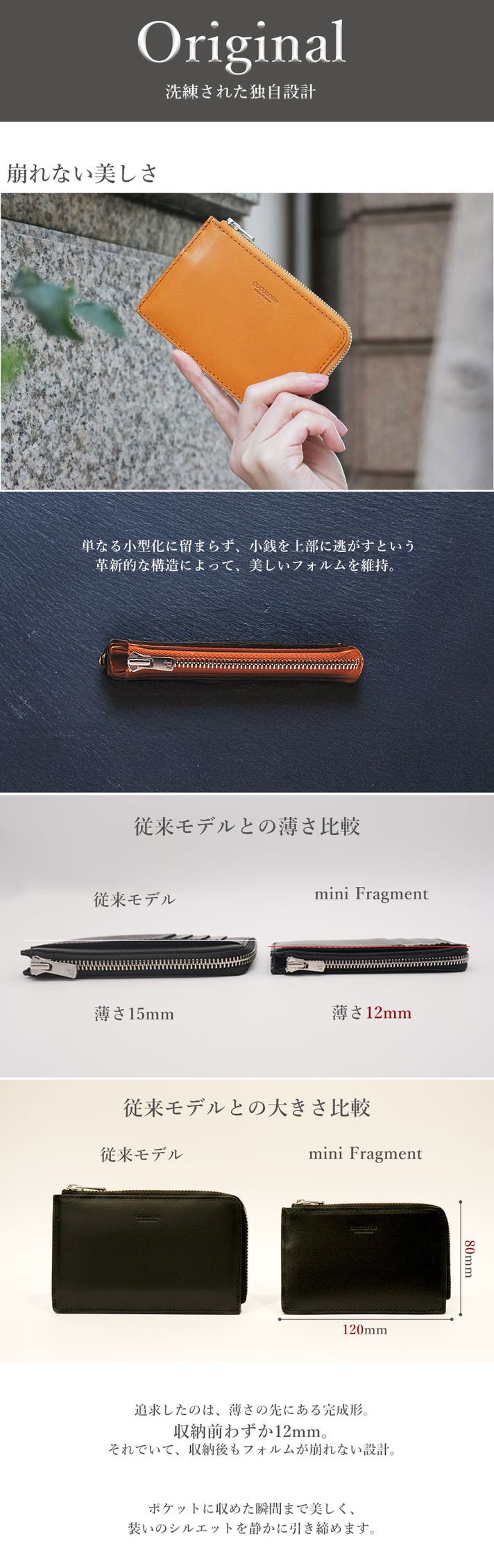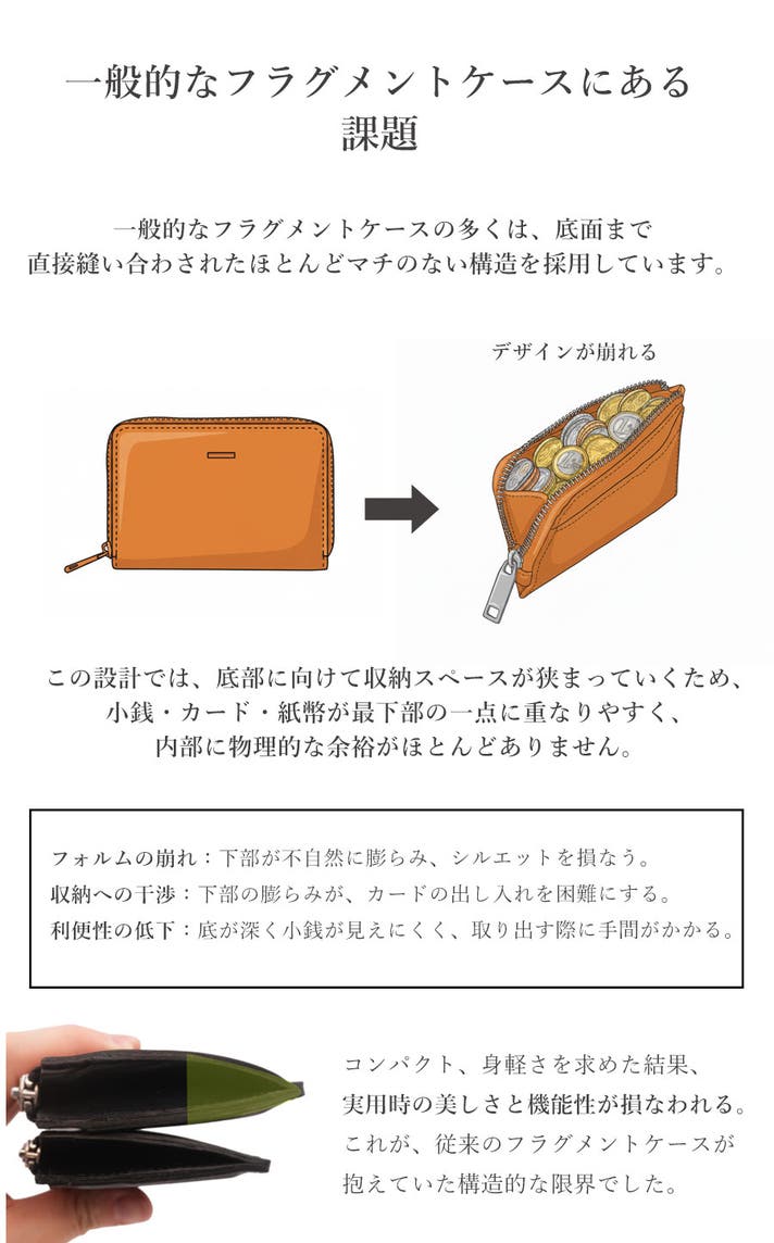 mini Walletの開発で学んだ「日常の不便を解決する機能性」と「手にする喜びを感じる質感」はそのままに、今の私たちが提案すべきと考える「新しい形」をゼロから設計いたしました。