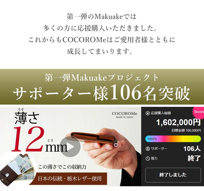 「Makuake(マクアケ)」は、実行者の想いを応援購入によって実現するアタラシイものやサービスのプラットフォームです。このページは、 プロダクトカテゴリの 「【COCOROMe】スマホ決済の時代に、なぜ財布を持つのか。答えは、引き算にある」プロジェクト詳細ページです。