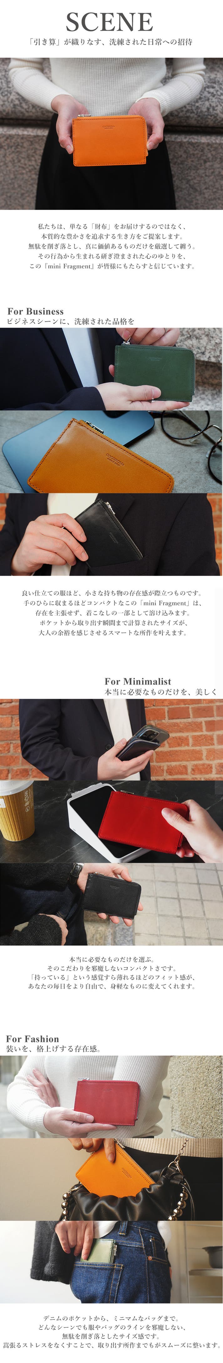 フラグメントケースとは、カード収納を中心に、必要最低限だけを持ち歩くためのケースです。現金をほとんど使わなくなった今、財布を小さくしたい人を中心に選ばれています。