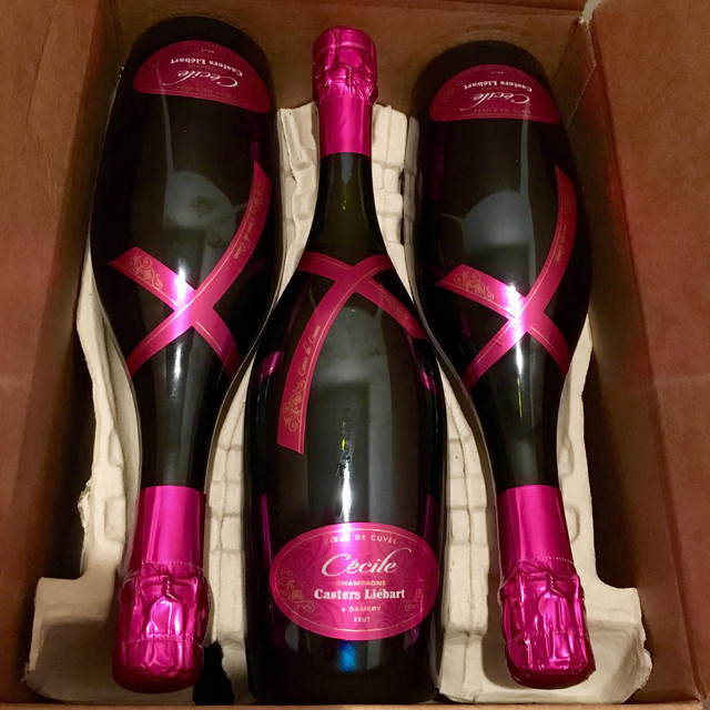 キュベ(一番搾り:4000kgのぶどうから2050リットルだけを一度にゆっくり絞る高級シャンパンの原料)を使用しています。