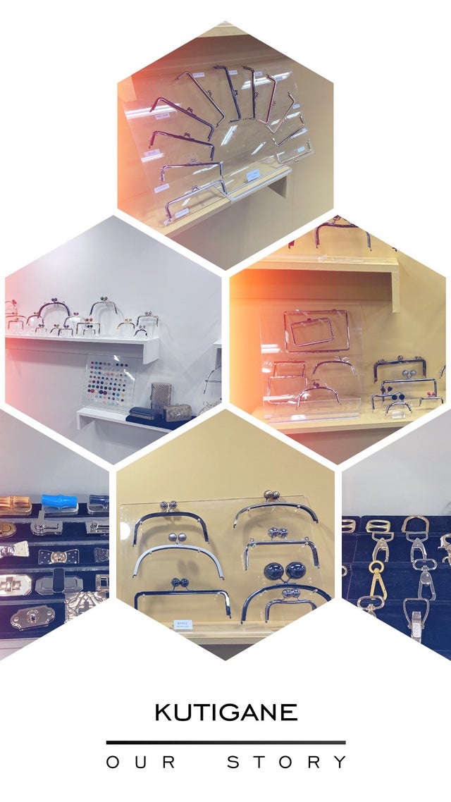 『がま口』でノスタルジック感をだすには最適だとおもいました。がま口は扇型の印象を持たれるとおもいます。今回は開口部を広くする、容量も多 く使用できるよう、長方形型オリジナル金具のサイズを特別に注文いたしました。