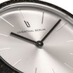 文字盤はバウハウススタイルのシンプルなデザインで、控えめなサンバースト加工や細身の針を採用することで、カジュアルで落ち着いた印象を与えています。ケースのコア素材にはステンレススチールを使用しており、長期間ご使用いただけます。また、ムーブメントにはスイスのRonda社製の高精度クォーツを採用し、常に正確な時間を刻みます。