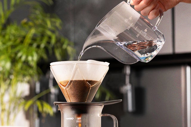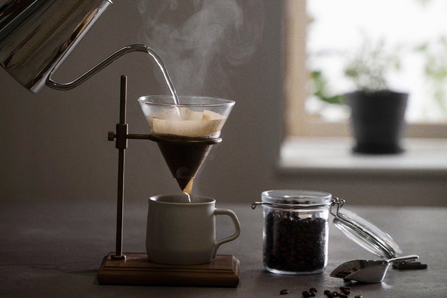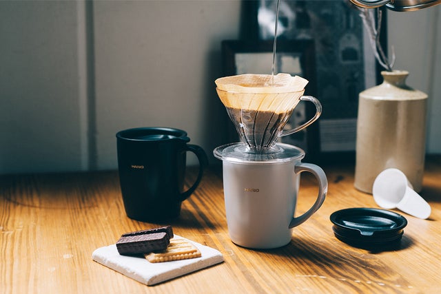 セットのドリッパーV60も、その構造により、お湯をゆっくり注ぐと濃厚な味に、手早く注ぐとスッキリした味に。注ぐ速度によって好みの味に変えられる優れもの!