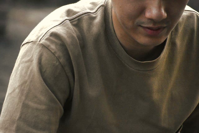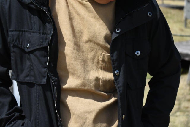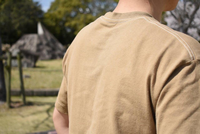 生地の種類によって濃さが変わるのも面白いですね。僕のシャツだと「シティロースト」ぐらい。頂いて最初に袖を通したときには、ほのかに珈琲の香りがしました。