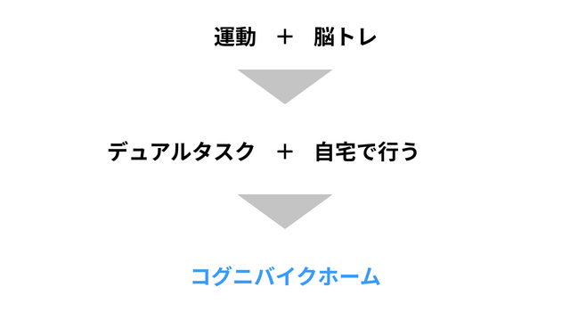 「運動」「脳トレ」これらを掛け合わせた「デュアルタスク」を自宅で手軽に行えるものが【コグニバイクホーム】です。