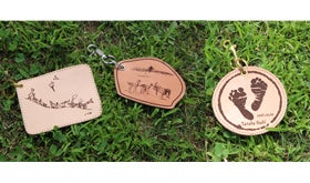 「イラスト、足型、文字などもキーホルダーにすることができます。」
