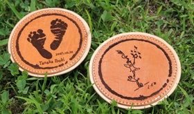 そして、子供の作品は、焼印(やきいん)のように革に熱で彫刻されているので、時間が経っても消えたりすることはありません。
