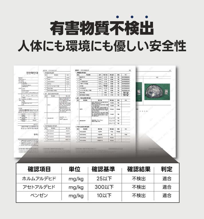 成分テストを実施した結果、代表的な10種類の有害成分は検出されませんでした。