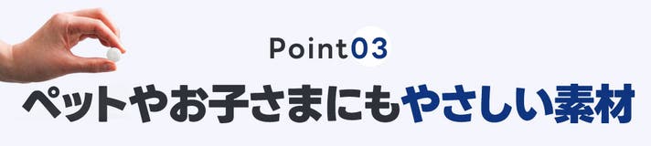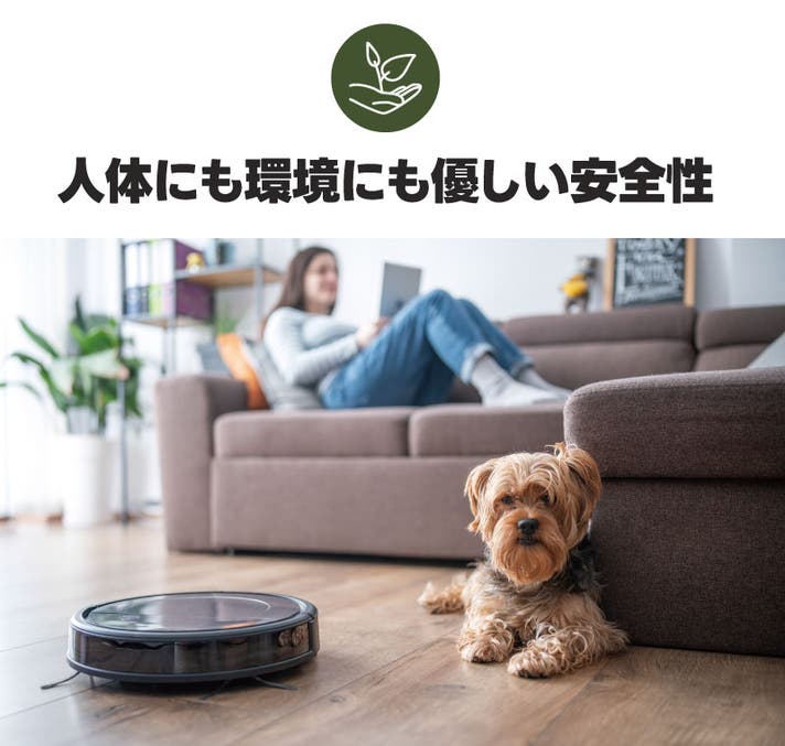 自然由来の成分、フマル酸ベースを使用 床に近い位置で過ごすお子さまやペットにもやさしい素材を使用しているため、安心してご使用いただけます。