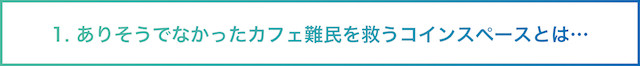 コインスペースは、「居場所を提供する10分からの時間貸し」をコンセプトにした、カフェがわりとなる時間料金制の新しいスペース提供サービスです。