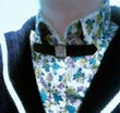 上の写真のように装着後、更に襟の外側からツイリースカーフを巻いてカラーサスペンダーの下を通してまとめると下の写真のようになります。※リターンにスカーフは含まれません。
