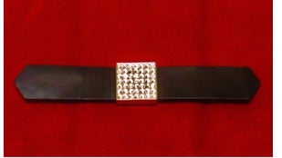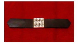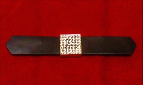 *センターに金属製のボックスがあしらってあり、表面にラインストーンが縦横にぎっしり配してあります。