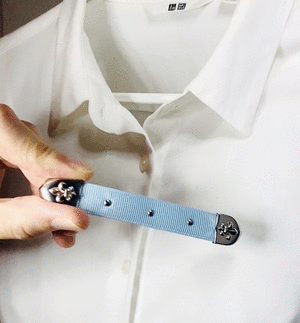 - シャツのえりを整える機能を持つアクセサリーです(第一ボタンを外して装着できて首が楽です)。
