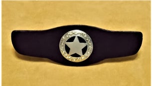次にご用意いたしました商品は「ウインダムスター」です。この商品は本体にレザー(本革)を用いており、真ん中に星型のコンチョをあしらってあります。カラーサスペンダーの中で一番カジュアルな雰囲気を持っているウインダムスター。デニムやダンガリーとのコーデにも相性が良く、遊びや何気ないお出かけにも最適。使い回し抜群なアイテムです。ストールなどの巻き物をお洒落に留められる実用性だけでなく、レザー(本革)とメタルのコンビネーションが何とも言えない味わい深い雰囲気をかもし出します。こちらの商品は皮革部分の色がダークブラウン1種類のみとなっております。