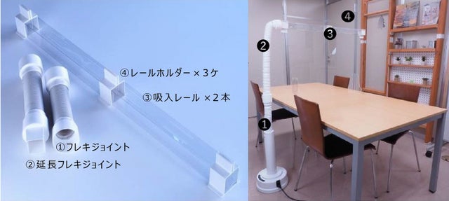 A. ご使用のパーテーションに取り付けて、パーテーションの上や下から飛沫を吸い込 むためのオプションセットです