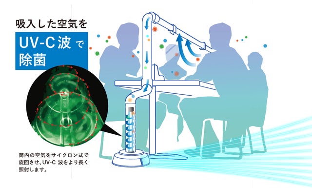 <吸引した飛沫はUV-C波で除菌し きれいな空気を送り出します>