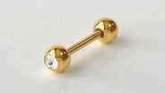 【 純チタン ストレートバーベル 16G 陽極酸化処理(アノダイズド)ゴールドカラー 4mmシングルジュエルボールタイプ×2点】