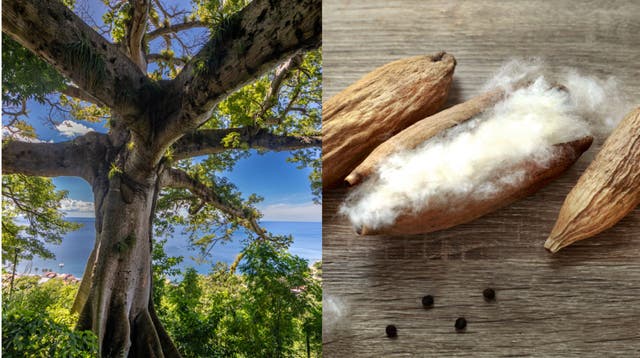 「カポック」とは、東南アジアに自生している樹木で、その実から採れる綿は、コットンの8分の1という軽さ。動物繊維ではないサステナブルな高機能素材として近年注目が高まっています。