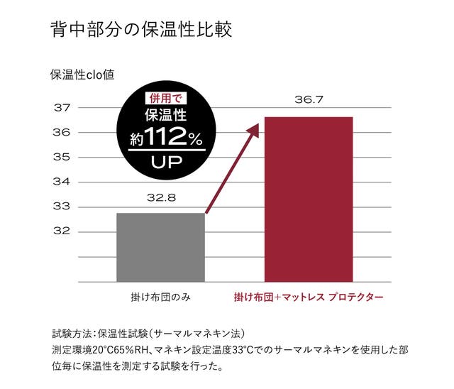 併用する事で、背中部分の保温性が112%UP。下からの冷えもしっかり防寒します。