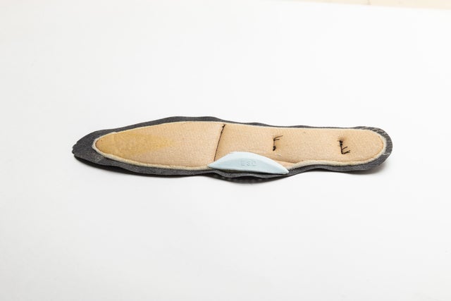 中敷の素材はもちろん、裏側にもウレタン加工や土踏まず部分にスポンジを入れるなど足裏に沿った構造になっており長時間履いていても痛くなりにくい仕様です。