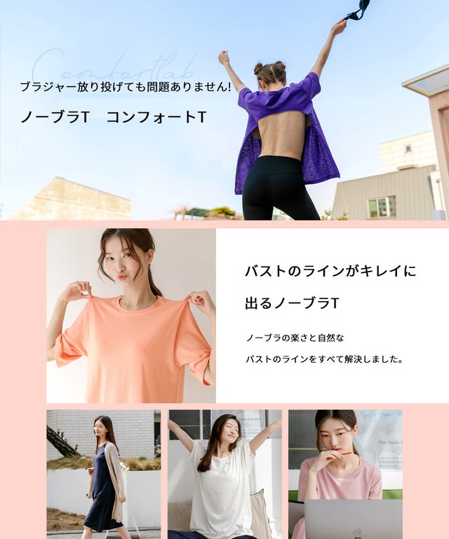 -家にいる時でもスーパーに行く時でも、ブラなしで着ることのできるコンフォートラップのノーブラT
