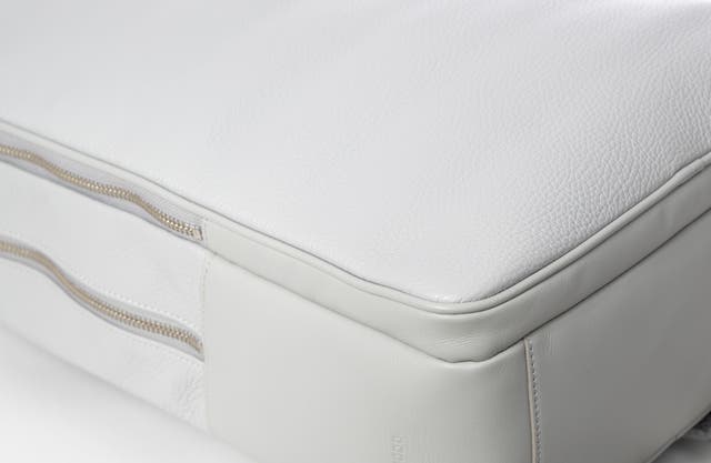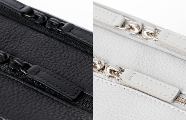同系色の質感の異なる革を組み合わせることで、シンプルながらもデザイン性をプラスした印象に仕上げています。