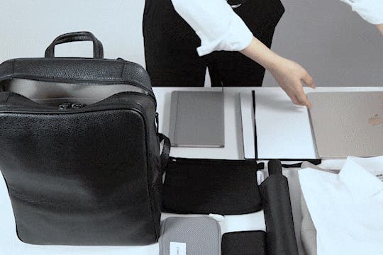 - デザイン性はもちろん、軽量・撥水性などビジネスシーンの機能性を考え尽くしたスクエアバックパック
