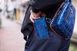 クロコダイルレザーに神秘的で崇高さ感じさせるカラーのミッドナイトブルーをメイン素材とし、内装には相性抜群のオレンジ色、ブラック、ネイビーに染色した3色のイタリアヌメ牛革を使用しています。