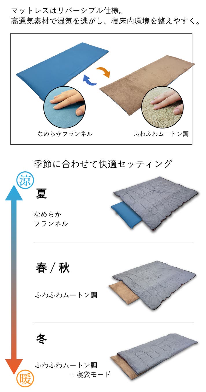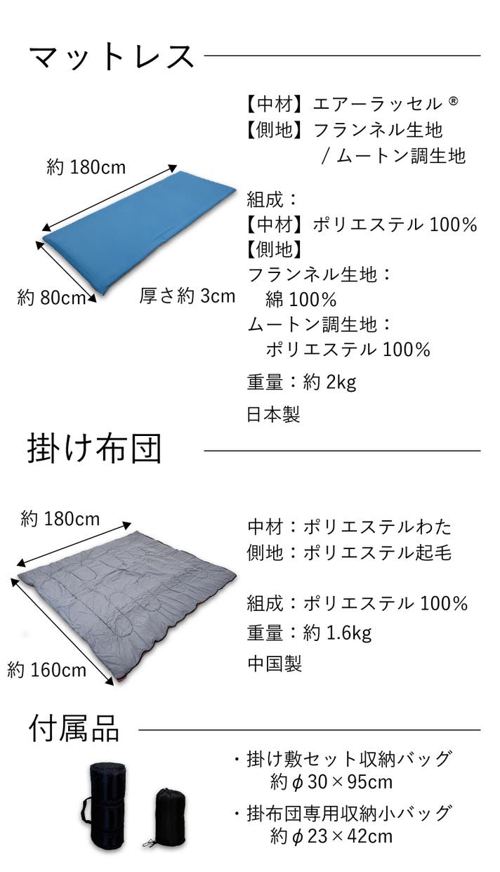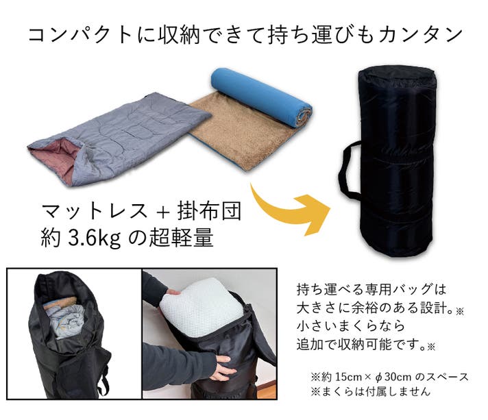 (マットレス×1、掛布団×1、専用バッグ×1、布団用バッグ×1)