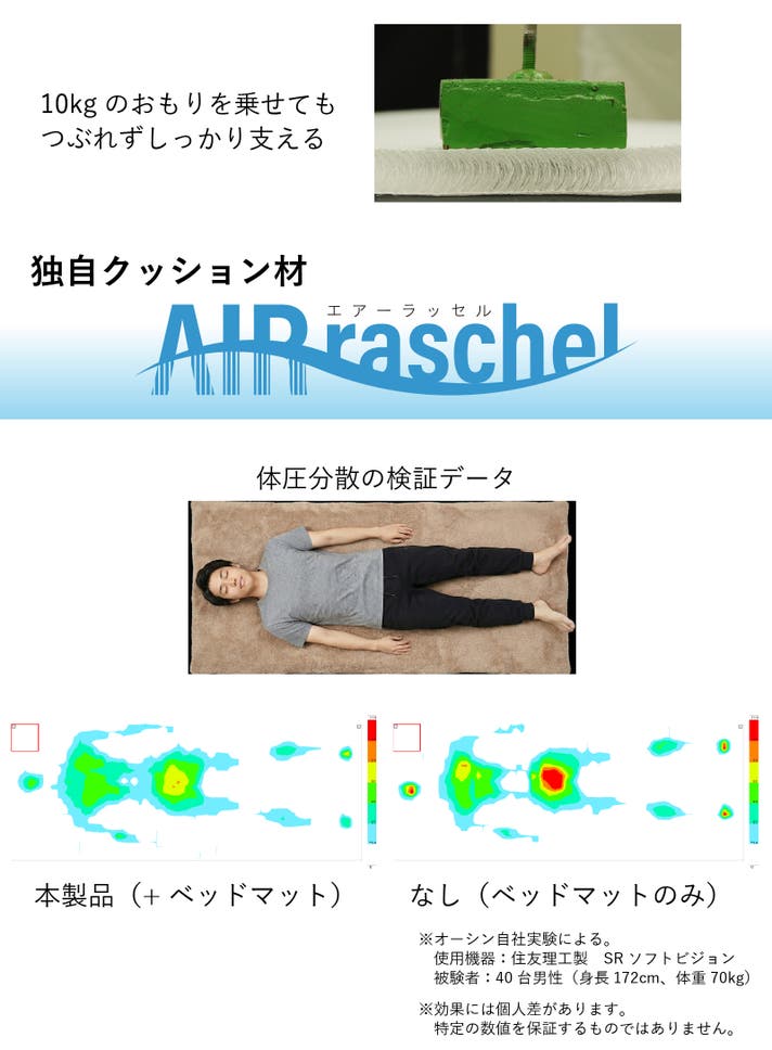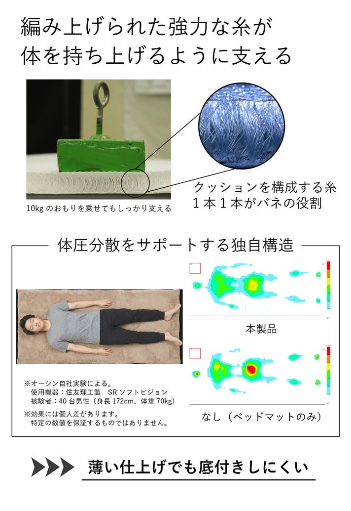 - コンパクトでも底付きしない。強力糸で支えるクッション材「エアーラッセル®」