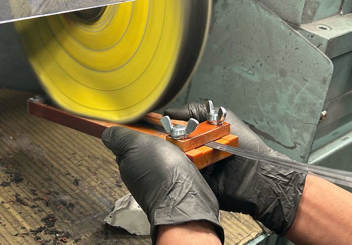 ヘアピンの長さにカットしたのち、まず磨きをかけます。