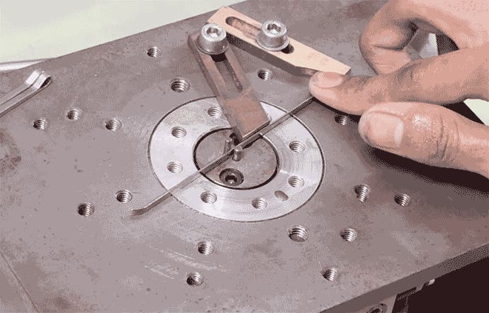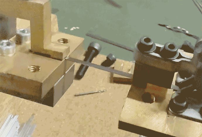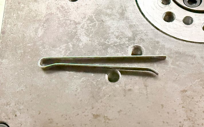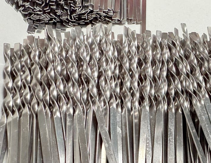 βチタンはねじりや曲げを加えると、戻ろうとする力(スプリングバック)がとても強くはたらく金属です。「ねじったあと」「折り曲げたあと」のそれぞれの工程で元に戻ろうとするため、すべての工程でスプリングバックを見越して加工する必要があります。