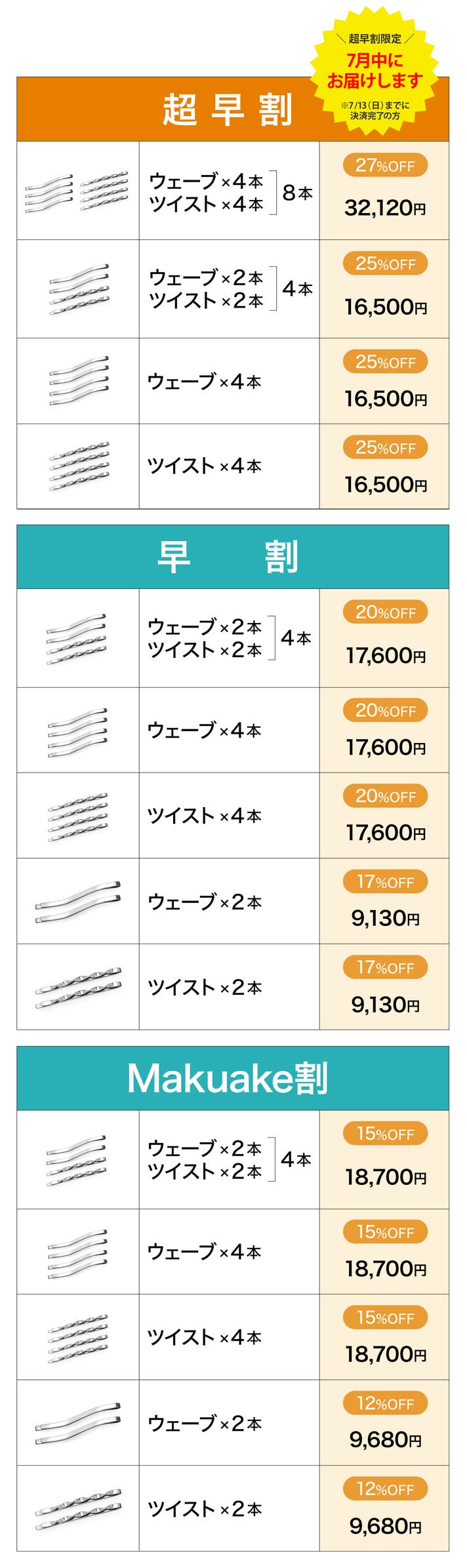 一般販売予定価格よりお安いマクアケ限定価格となっております。単品またはセットからお選びいただけます。