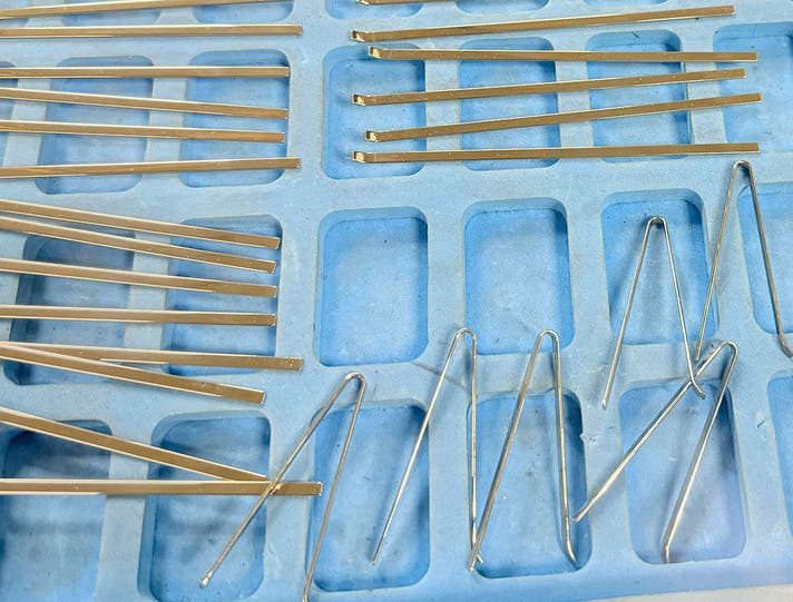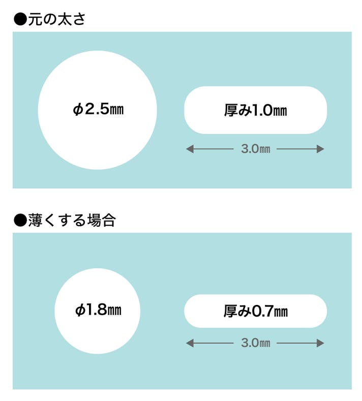 ヘアピンはワイヤー状のチタンを平たく伸ばして製作するため、厚みを変えたい場合は、ワイヤーの太さを変更する必要があります。