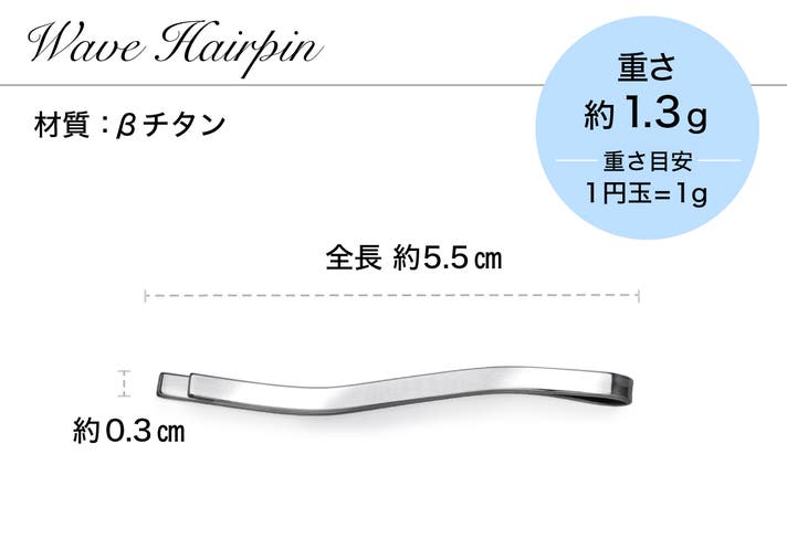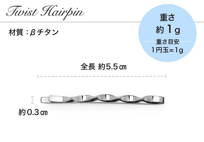 鉄よりも約6割軽いとされているチタンは、長時間着用するヘアピンの素材として最適です。また鉄やステンレスと同程度の強度があることも特徴のひとつです。