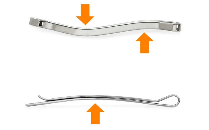 βチタンはチタンの特徴である軽さ、強さ、錆びにくさに加えて、バネ特性も併せ持っており、使うたび先端の開閉が行われるヘアピンには最適な素材です。